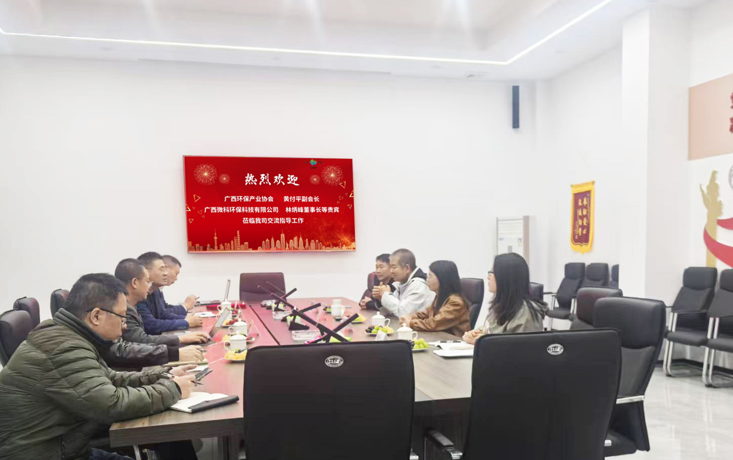 ?? ? ?2025年12月8日廣西環(huán)保產(chǎn)業(yè)協(xié)會黃付平副會長、廣西微科環(huán)保科技有限公司林炳峰董事長等貴賓一行,專程蒞臨浙江川寧環(huán)保科技有限公司交流指導。? ? ? ?